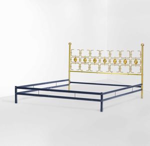 Letto matrimoniale con struttura in metallo laccato e testiera in ottone lavorat [..]