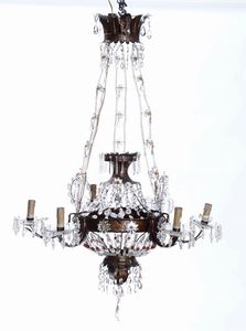 Lampadario Carlo X a sei luci in metallo e cristalli. XIX secolo