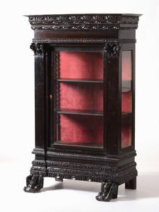 Vetrina in legno intagliato e scurito. Italia meridionale, XIX-XX secolo