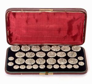 Set di bottoni da livrea in metallo e pietre semipreziose, XIX secolo