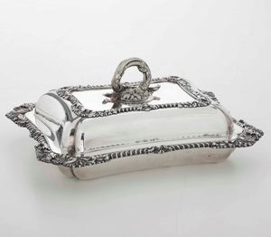 Legumiera in metallo argentato. Inghilterra XX secolo