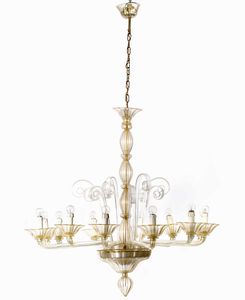 Lampadario in vetro di murano a 12 luci. XX secolo