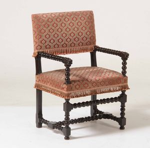 Poltrona in legno intagliato e scurito. Italia meridionale, XIX-XX secolo