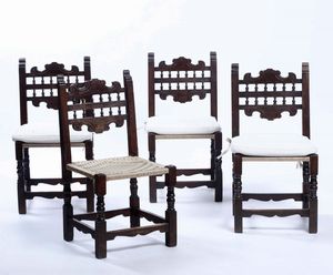 Poltrona a rocchetto in legno scurito e tornito. XVIII-XIX secolo