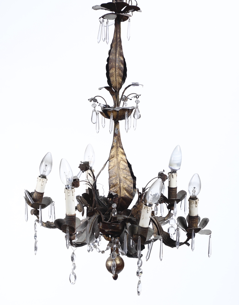 Lampadario in metallo dorato e cristalli, XIX-XX secolo