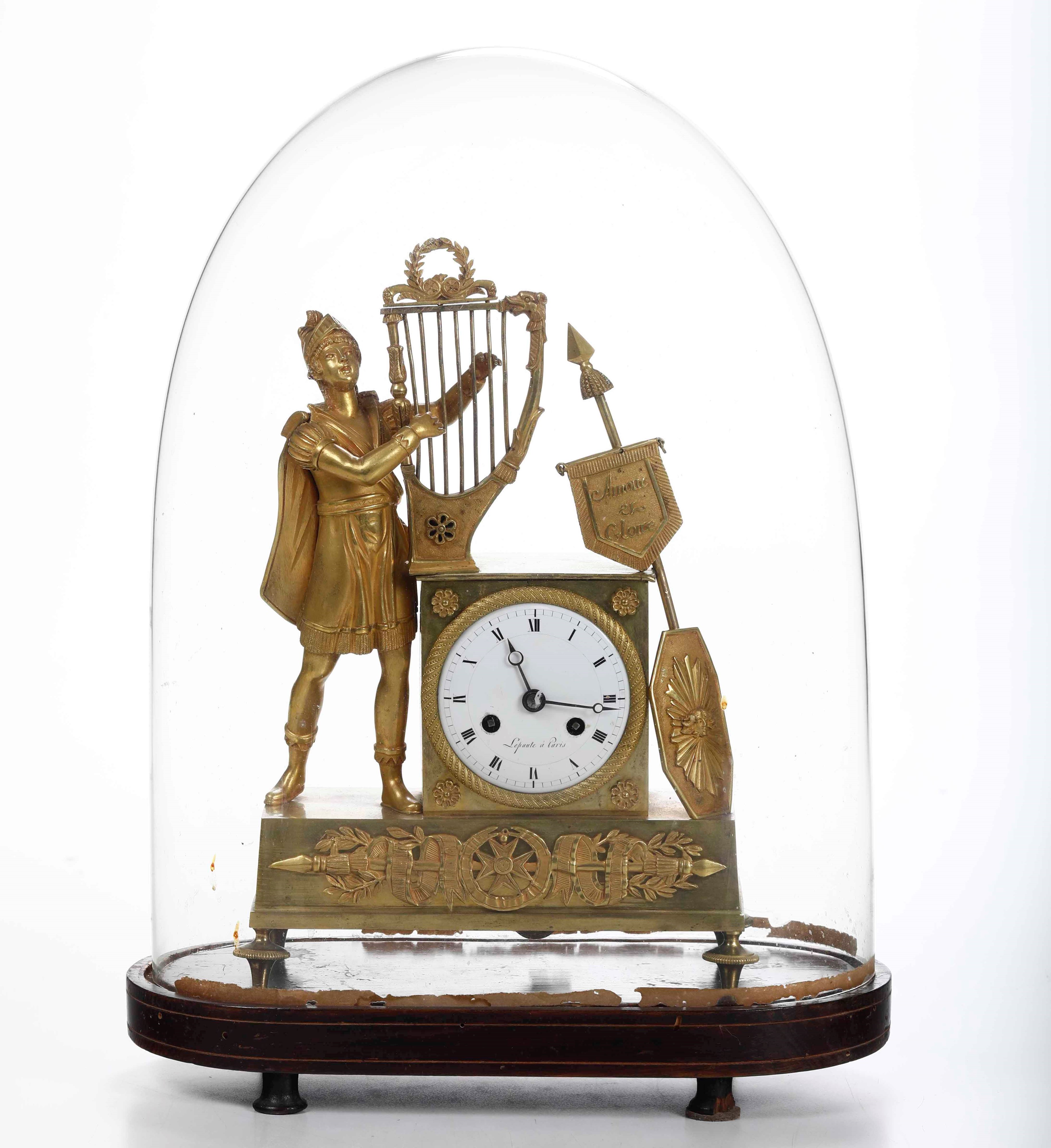 Piccola pendola da tavolo in bronzo dorato, XIX secolo