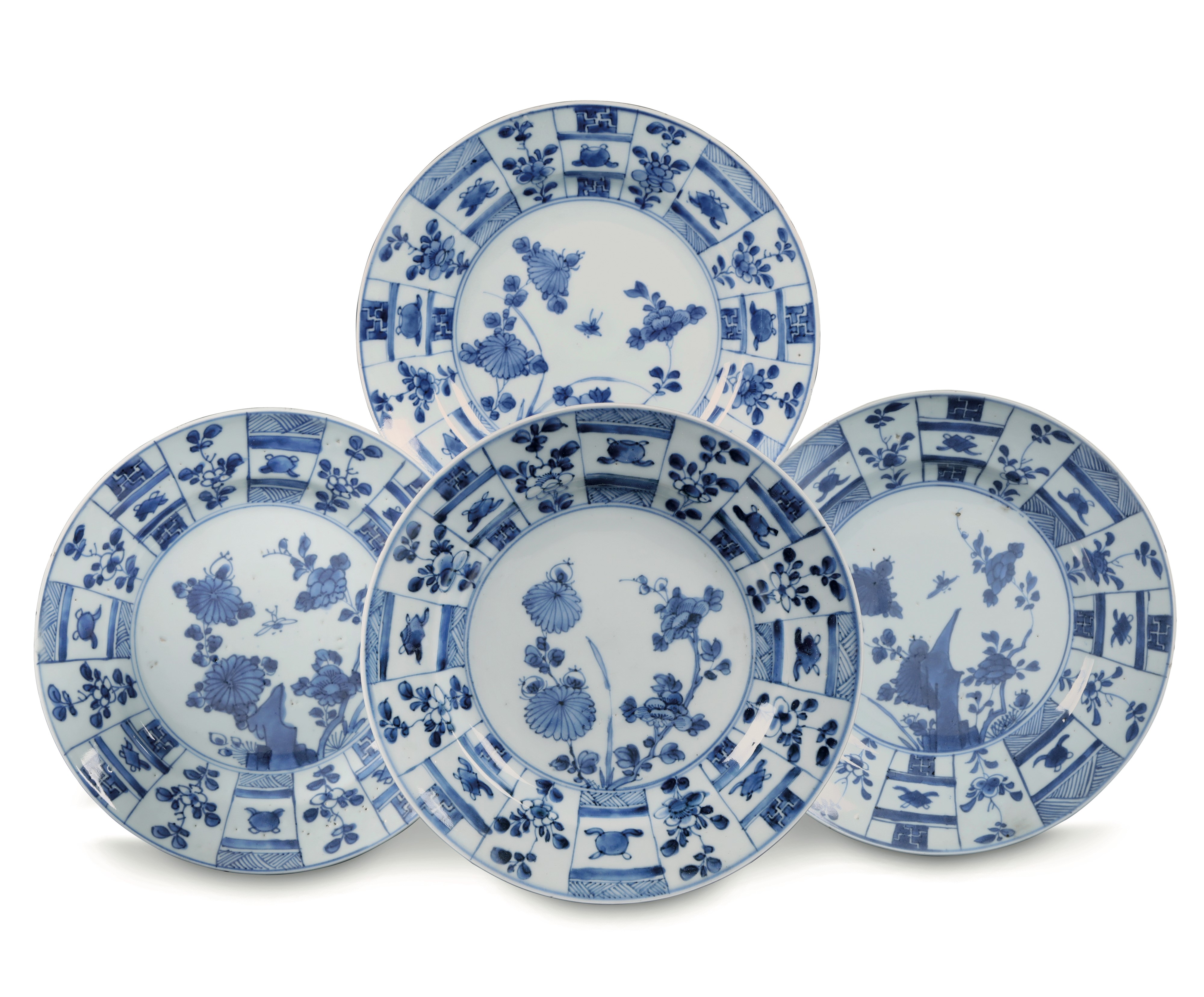 Quattro piatti profondi a parete obliqua, di due misure. Cina dinastia King, era [..]