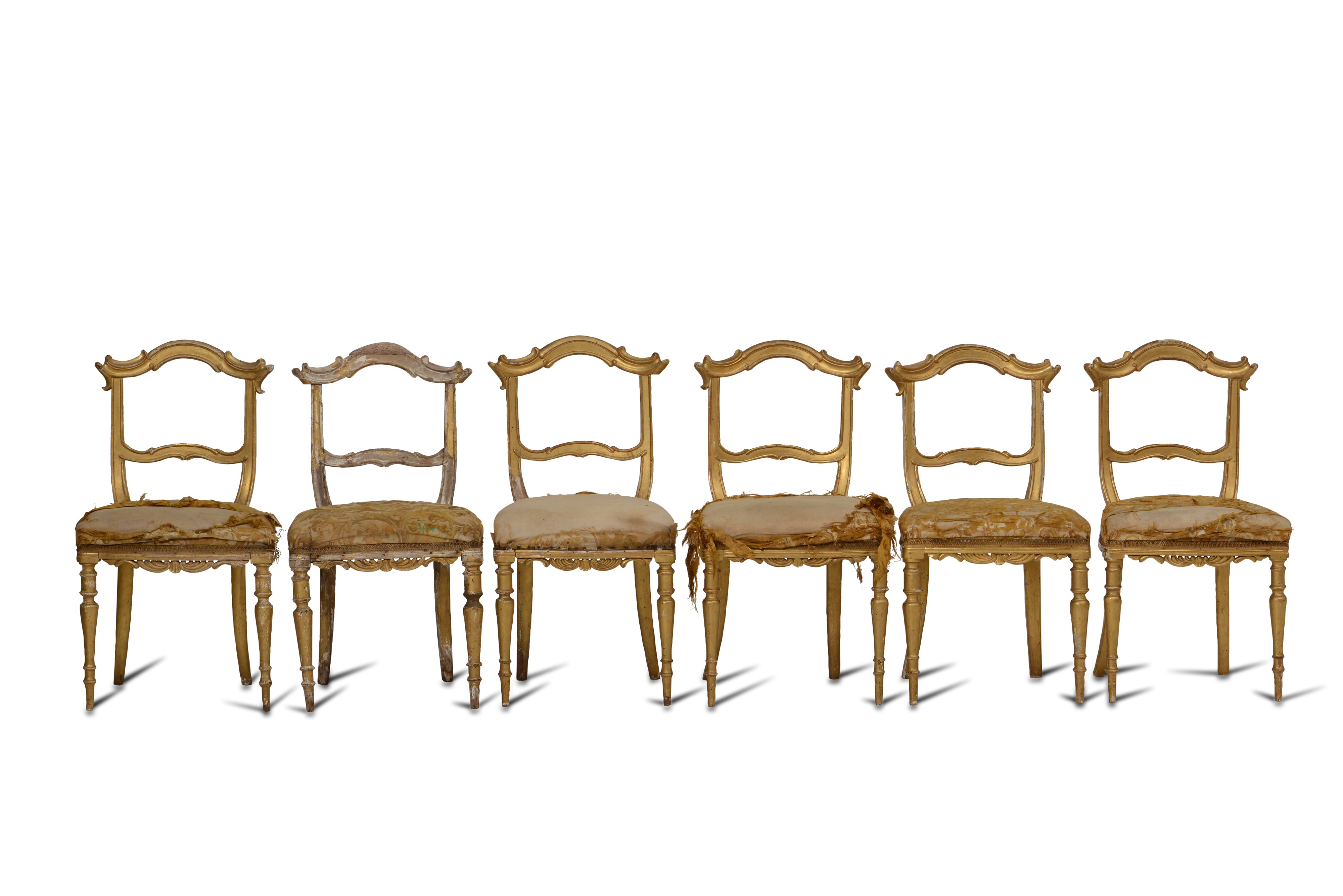 Sei sedie Luigi XIV in legno dorato, XVIII secolo