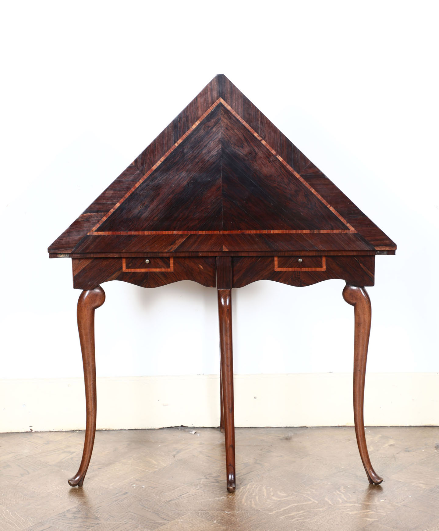 Tavolino da gioco Luigi XV triangolare apribile lastronato e filettato, Genova, [..]