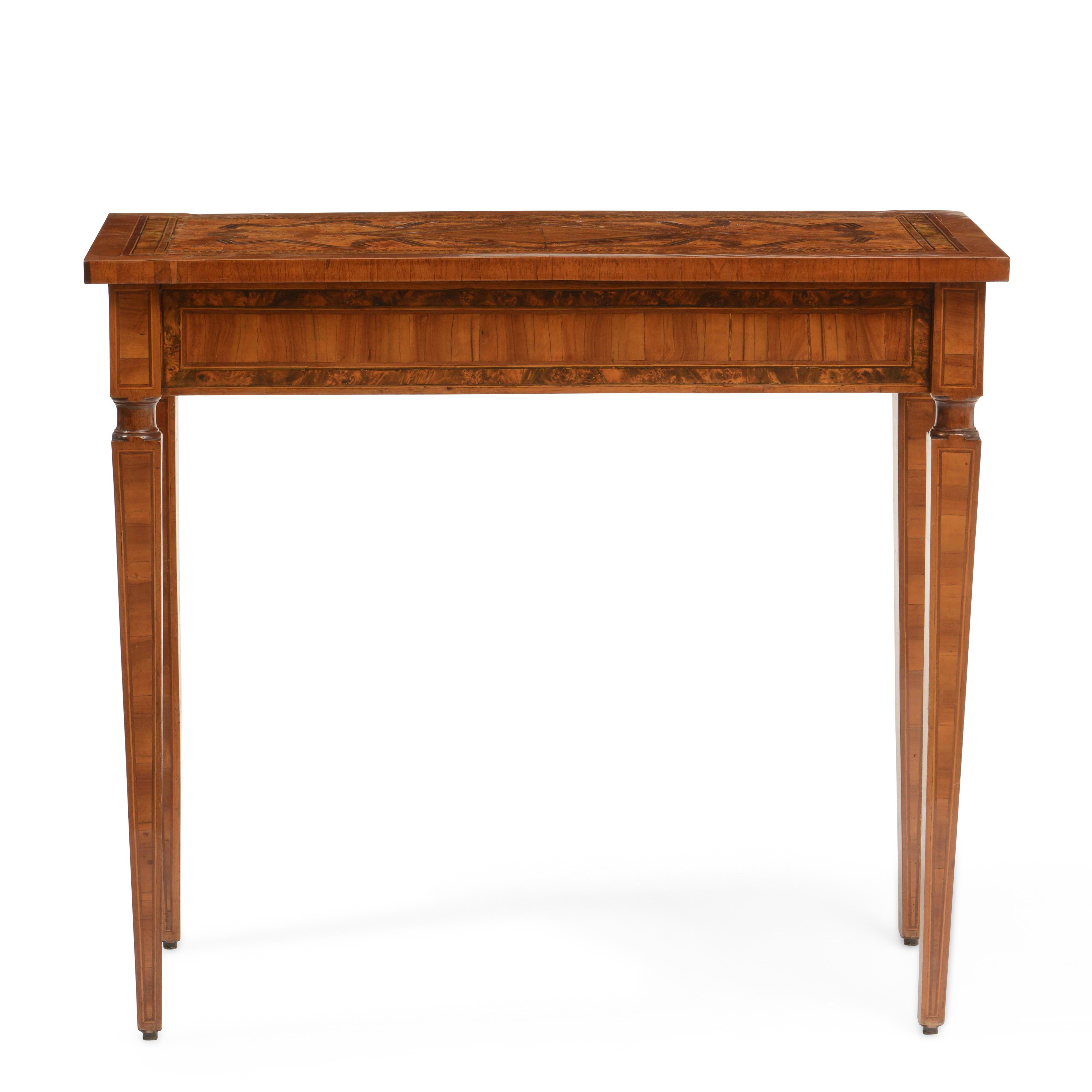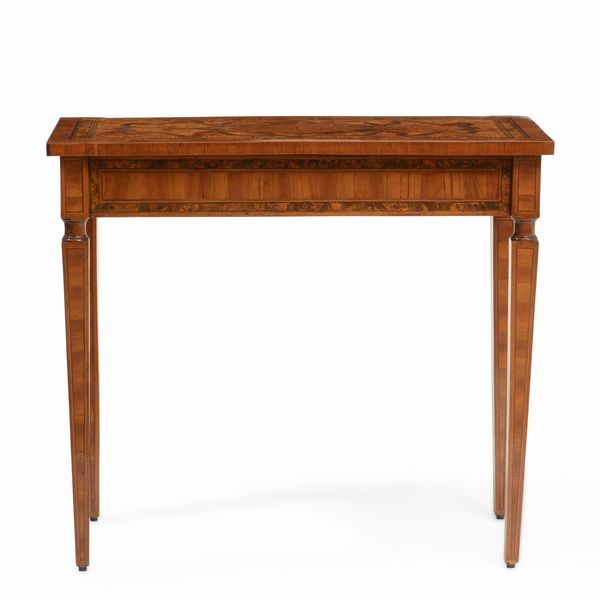 Tavolino da parete lastronato ed intarsiato. XIX-XX secolo