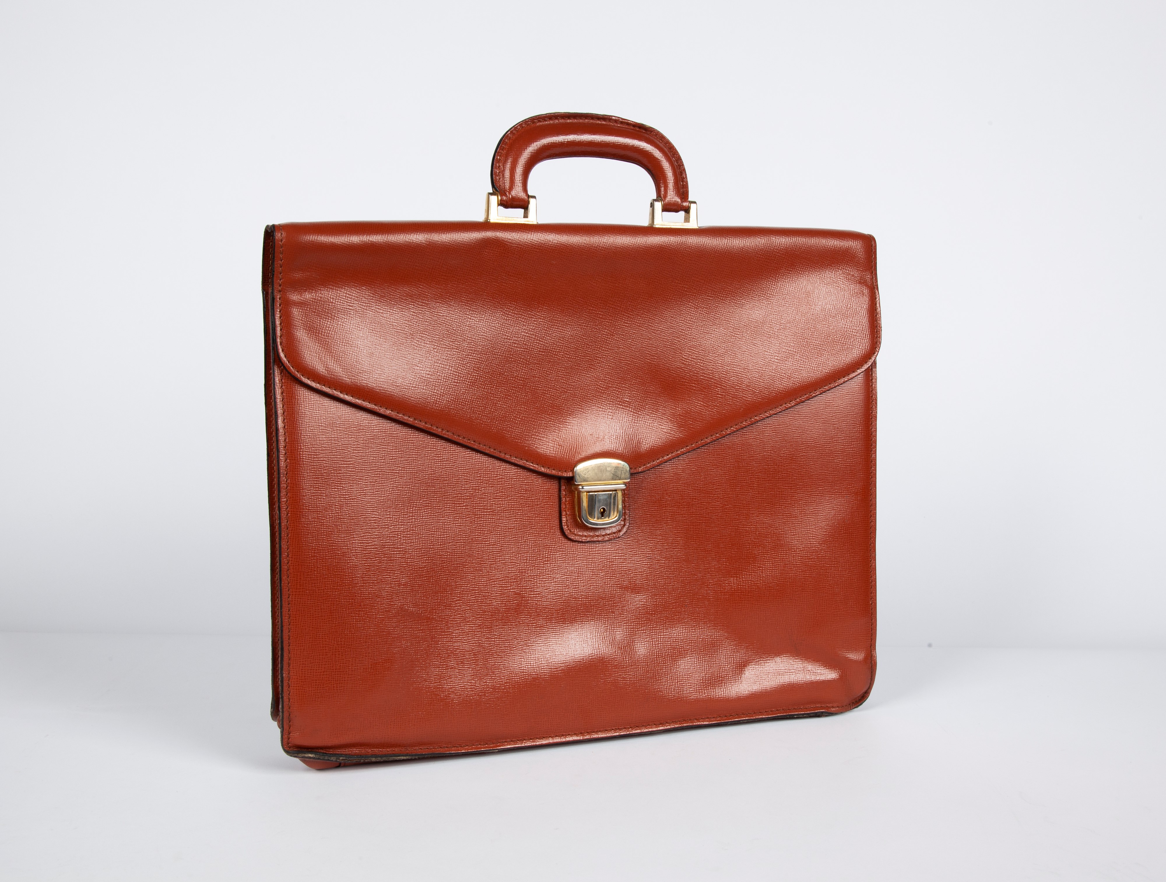 Con manico, due scomparti interni di cui uno con portapenne e documenti, uno scomparto esterno con cerniera; interno rivestito in tessuto.