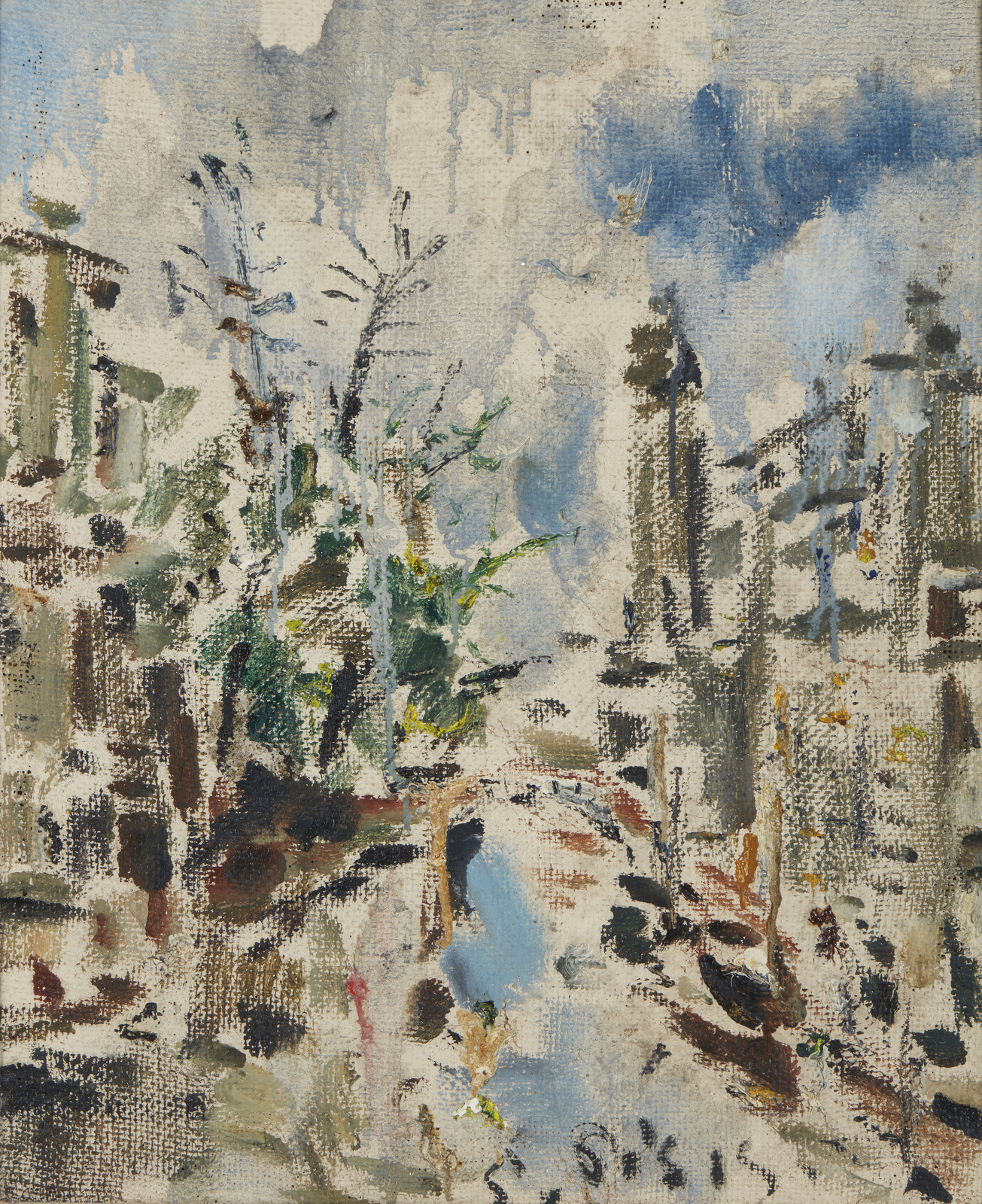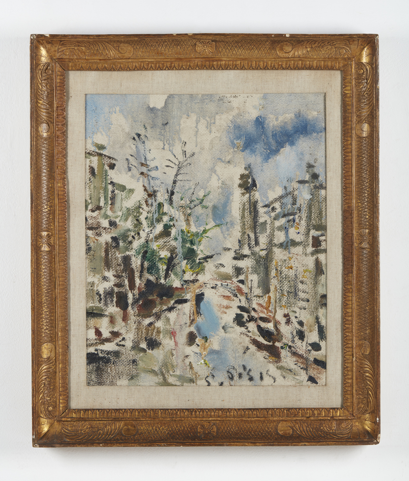 Firma in basso a destra. Al retro cartiglio descrittivo e timbri Galleria d'arte Pinacoteca, Roma. Opera archiviata presso l'Associazione per il Patrocinio delle opere di Filippo De Pisis,Milano, come da documentazione fotografica allegata all'opera riportante il relativo numero d'inventario. Lievi difetti.
