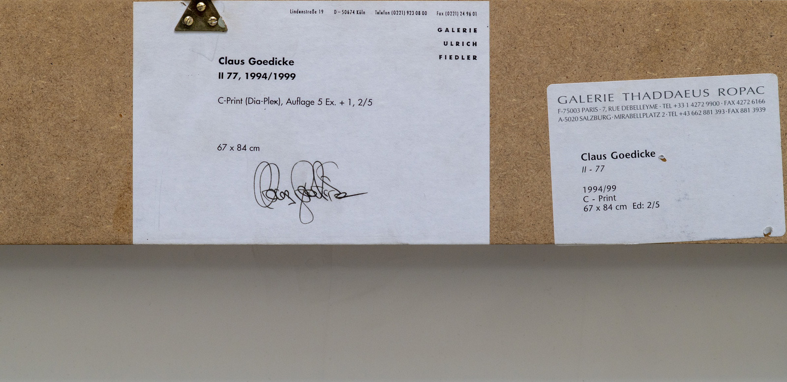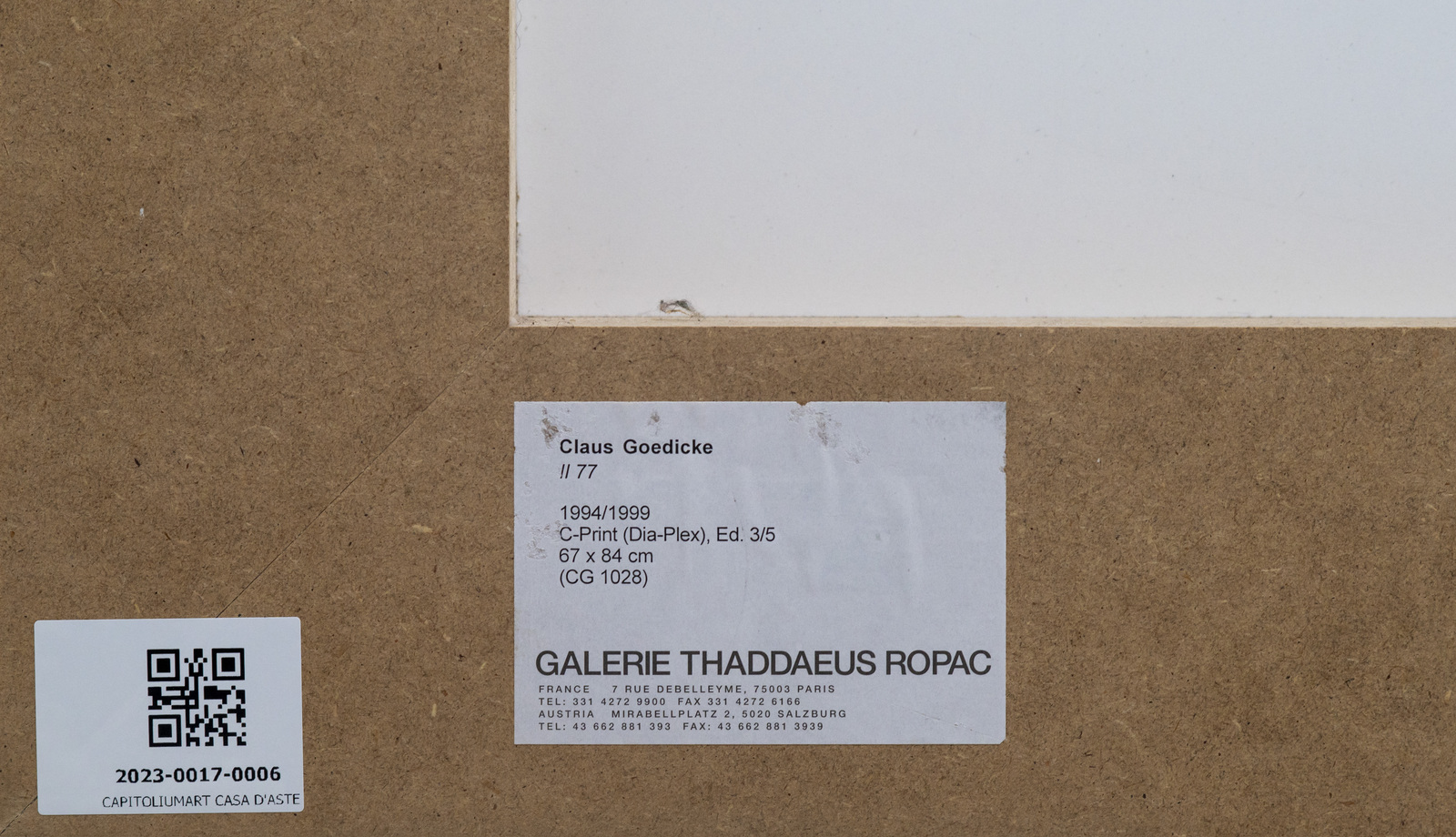2/5. Tiratura al retro. Provenienza: Galleria Ulrich Fiedler, Berlino. Galleria Thaddaeus Ropac, Parigi. Collezione privata. Pierre Bergé & Associés, Parigi. Collezione privata, Roma. Autentica dell'artista su fotografia. Lievi difetti.