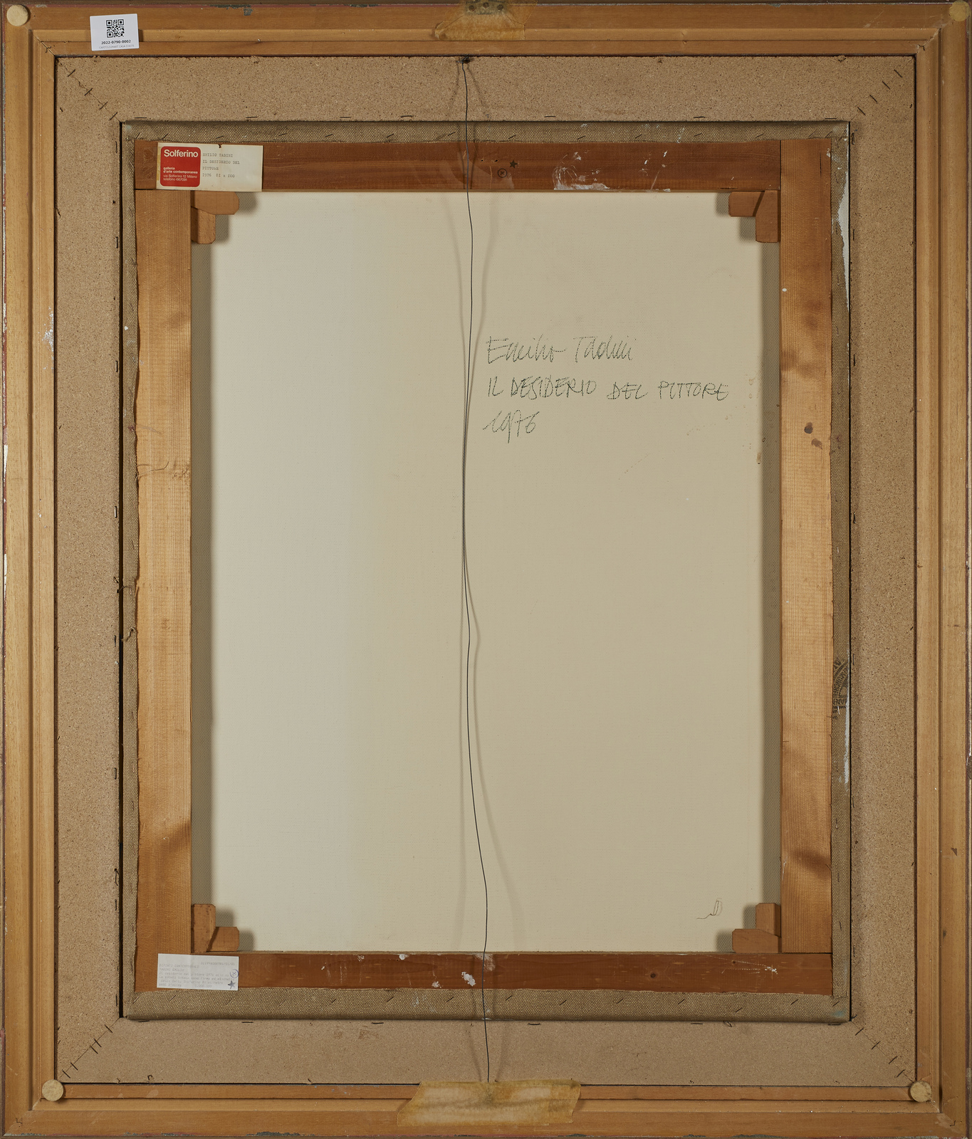 Al retro titolo, firma, anno e cartiglio descrittivo Galleria d'arte Solferino, Milano. Autentica su fotografia della Galleria Gị Marconi, Milano. Certificato di garanzia e provenienza Casa d'aste Meeting Art, Vercelli.