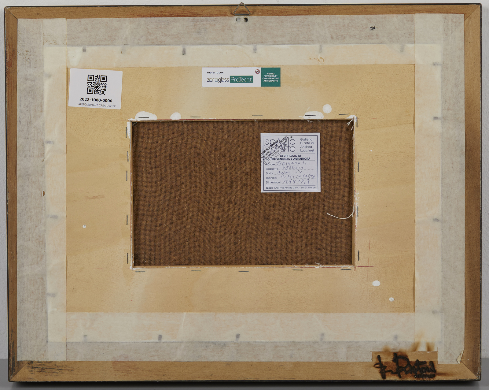 Firma in basso a sinistra. Al retro cartiglio descrittivo della Galleria Spazio Arte, Firenze. Autentica su fotografia di Giovanni Faccenda.
