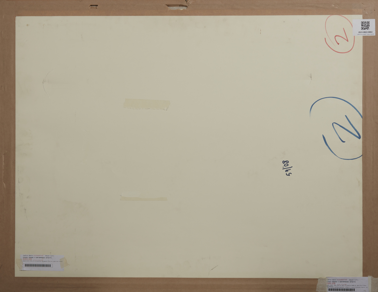 Certificato di provenienza rilasciato da Meeting Art Casa 'Aste, Vercelli. Pubblicazioni: Remo Bianco. Catalogo generale, volume I, a cura di Adriano Altamira, Edizioni Mazzotta, pag. 100, n° 3D L 38. Lievi difetti.