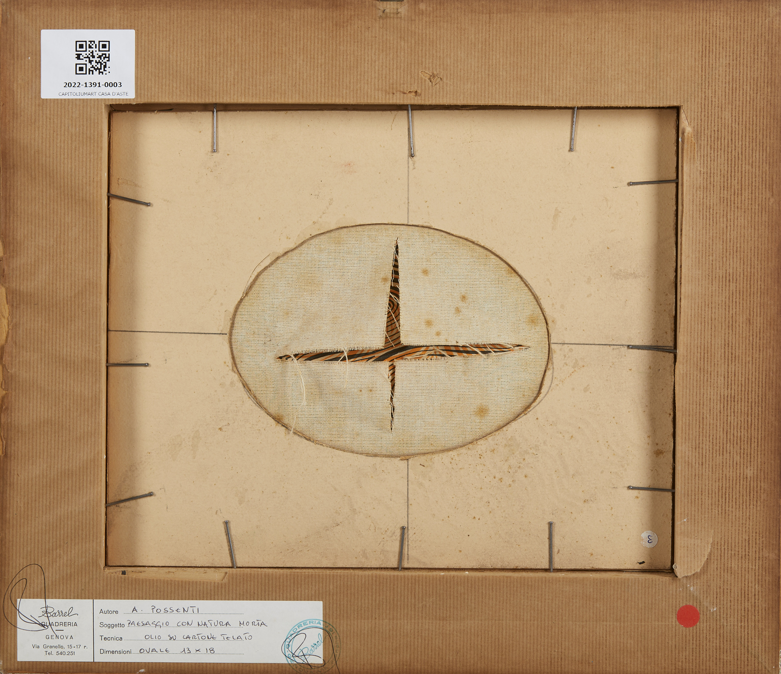 Firma in basso al centro. Al retro cartiglio descrittivo e timbro Barrel Quadreria, Genova. Si ringrazia Giovanni Possenti per aver confermato l'autenticità dell'opera.