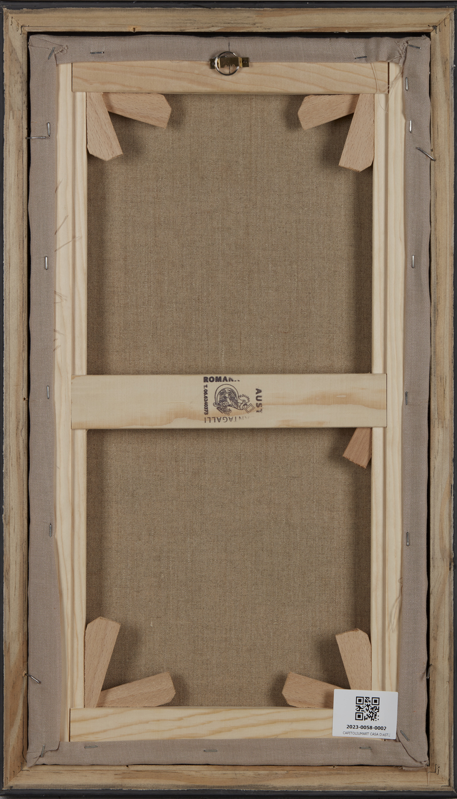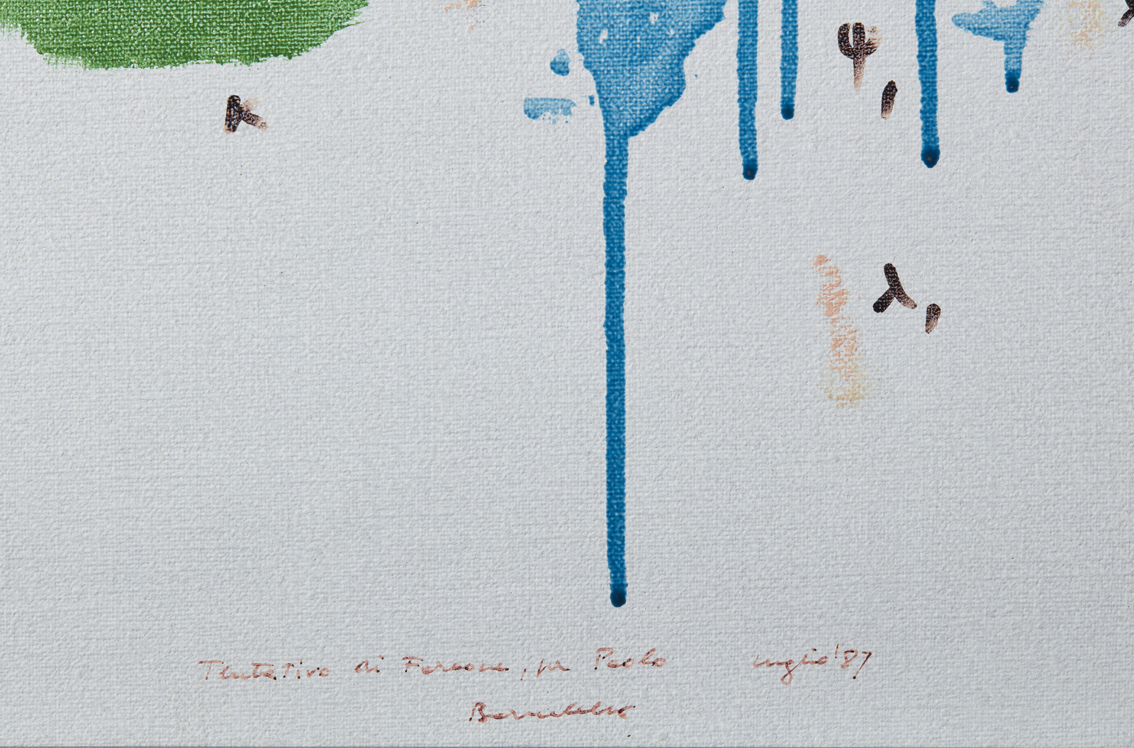Titolo, firma e anno in basso al centro. Opera archiviata presso la Fondazione Baruchello, Roma, come da documentazione fotografica allegata all'opera riportante il relativo numero d'inventario.