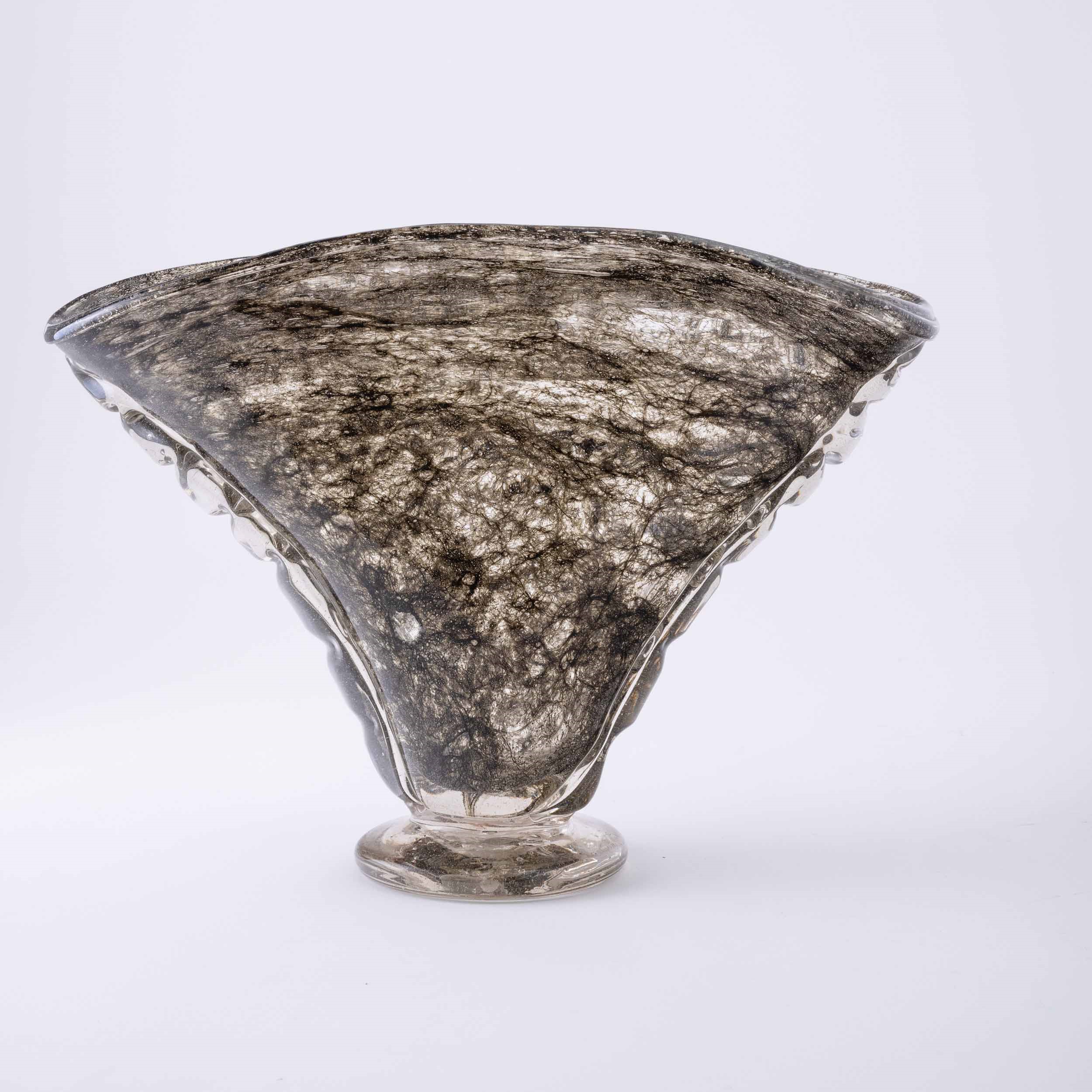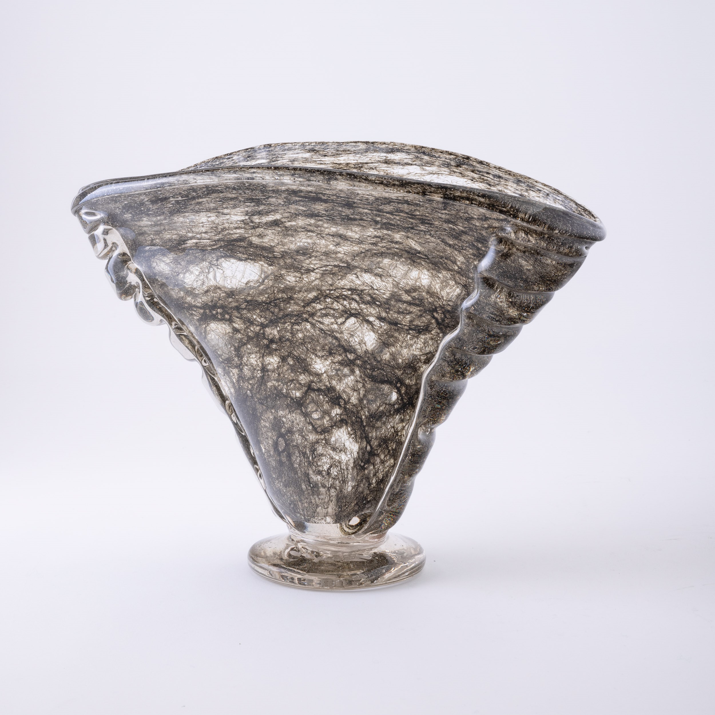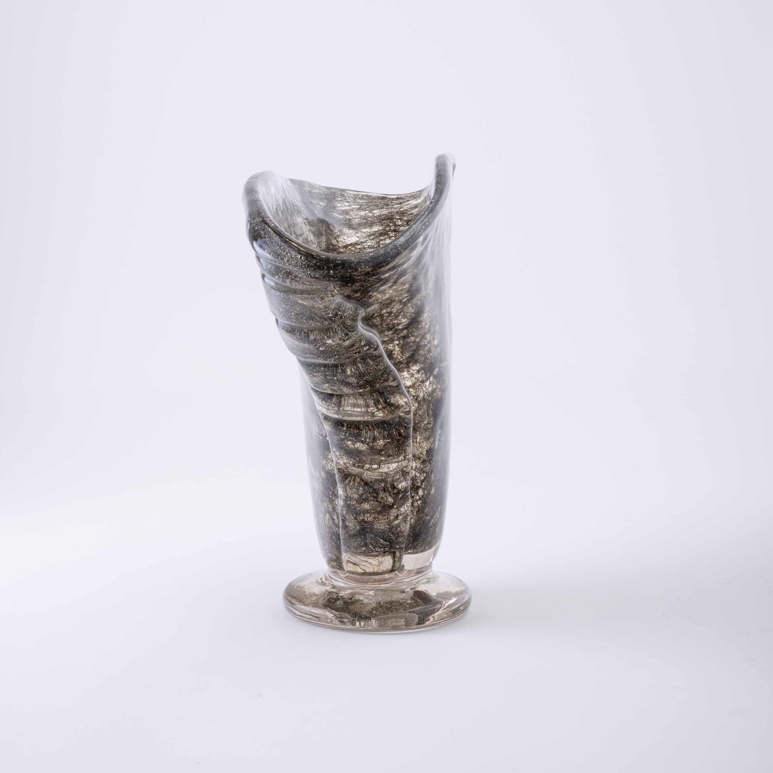 Vaso a ventaglio in vetro Crepuscolo con anse e piede applicati in cristallo.