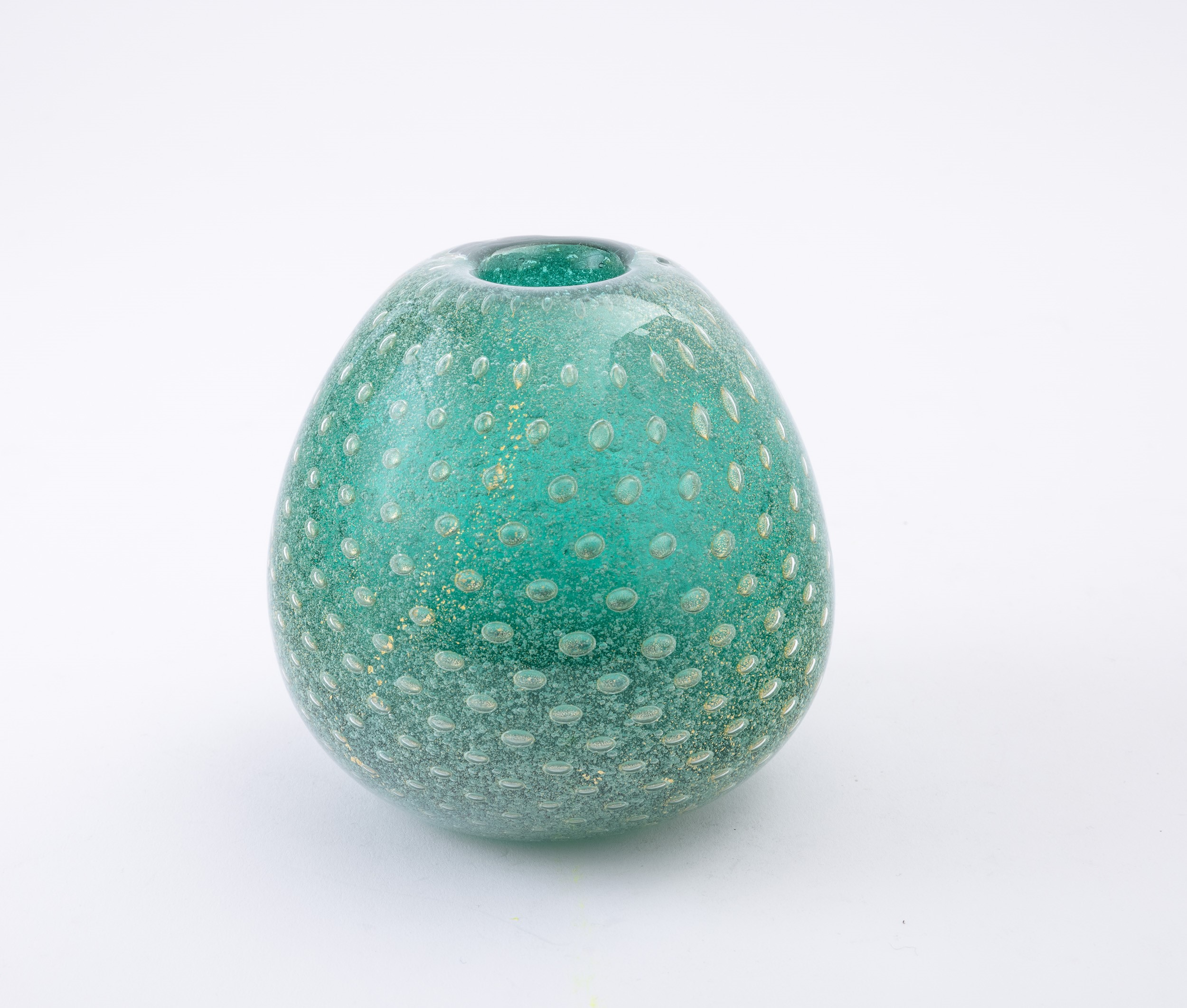 Vaso troncoconico in vetro A Bollicine con decoro in foglia oro.