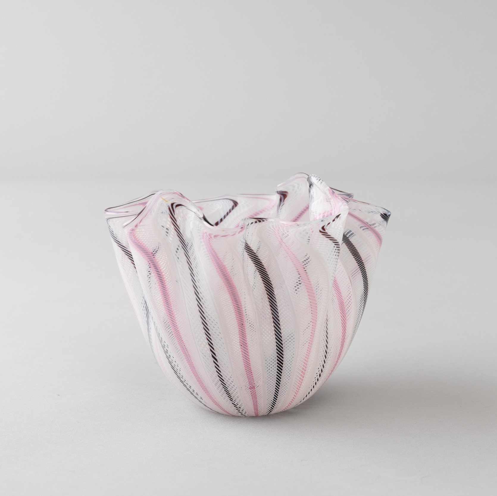 Piccolo vaso a Fazzoletto con decoro di canne ritorte policrome.