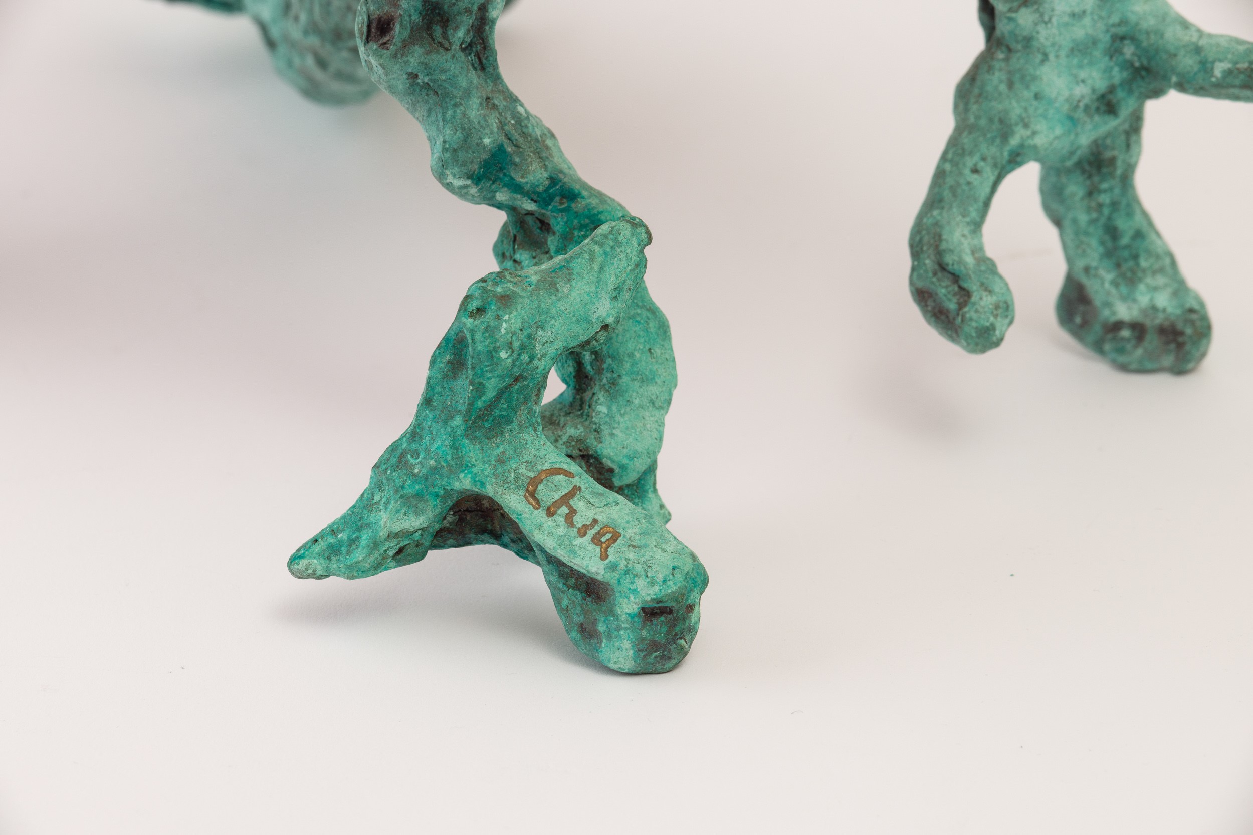 Lampada da tavolo serie Mappamondi in vetro soffiato con decoro policromo su basamento in bronzo patinato verde.