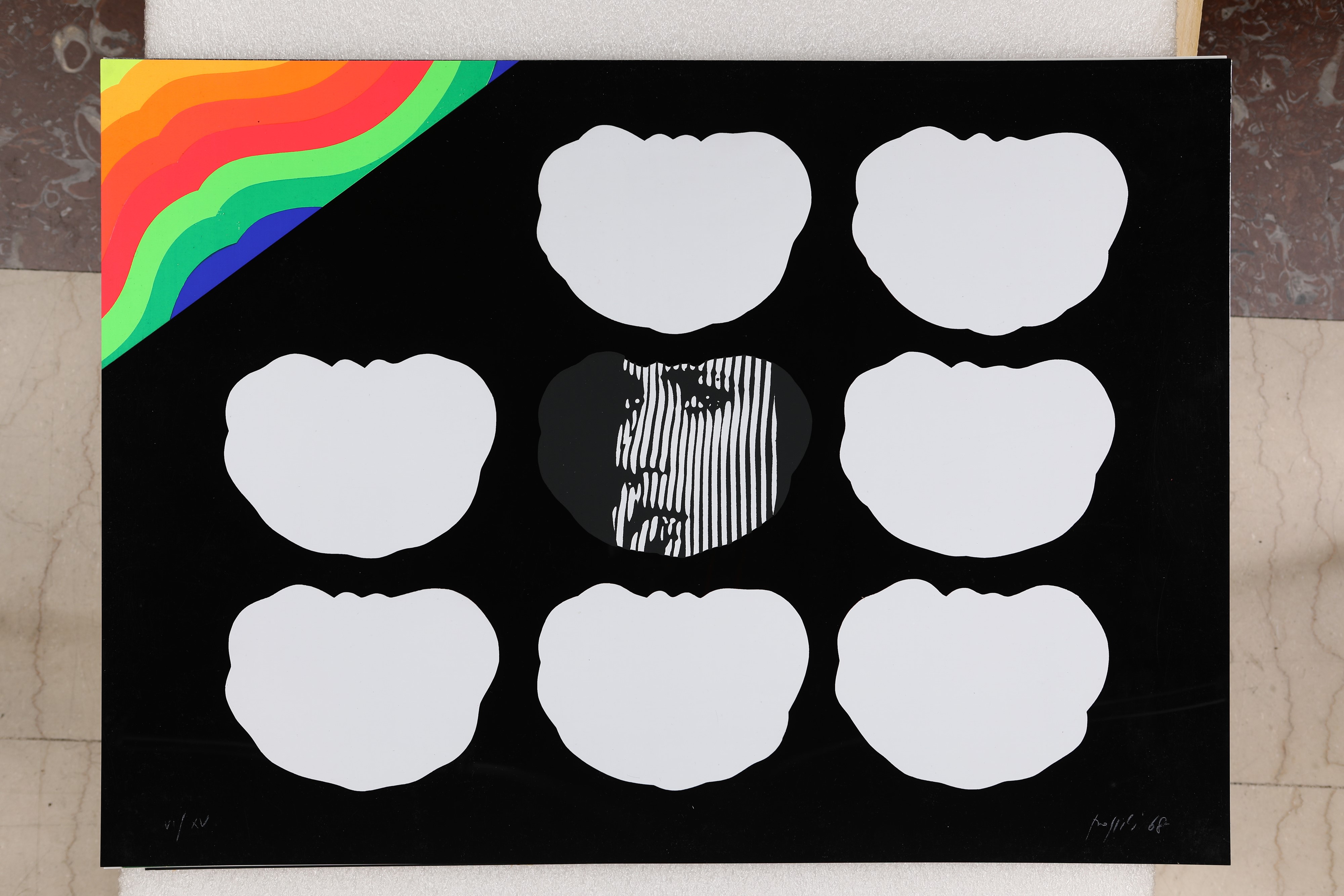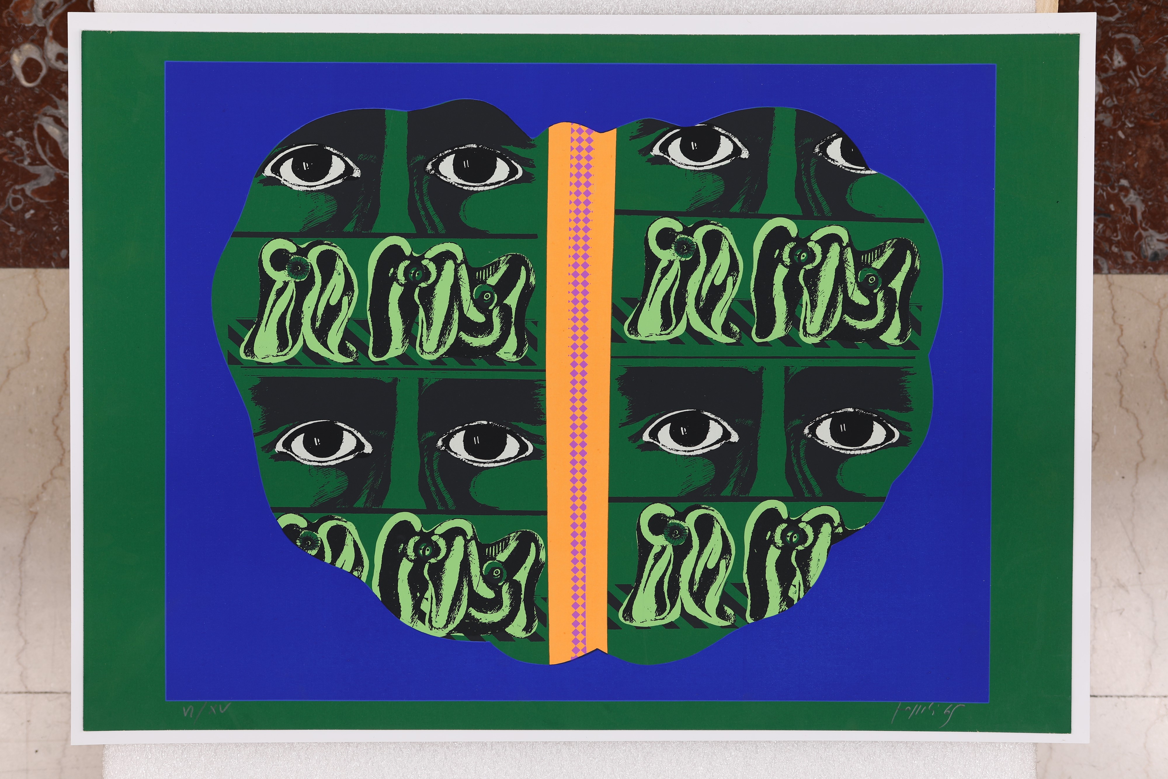 1970 Cartella in plexiglass con 8 serigrafie tutte firmate e numerate Pozzati VI/XV, poemi di Mario Ramous e 7 fotografie di corrado Riccomini. La cartella completa conta di 10 serigrafie, quella da noi proposta ne mancano 2