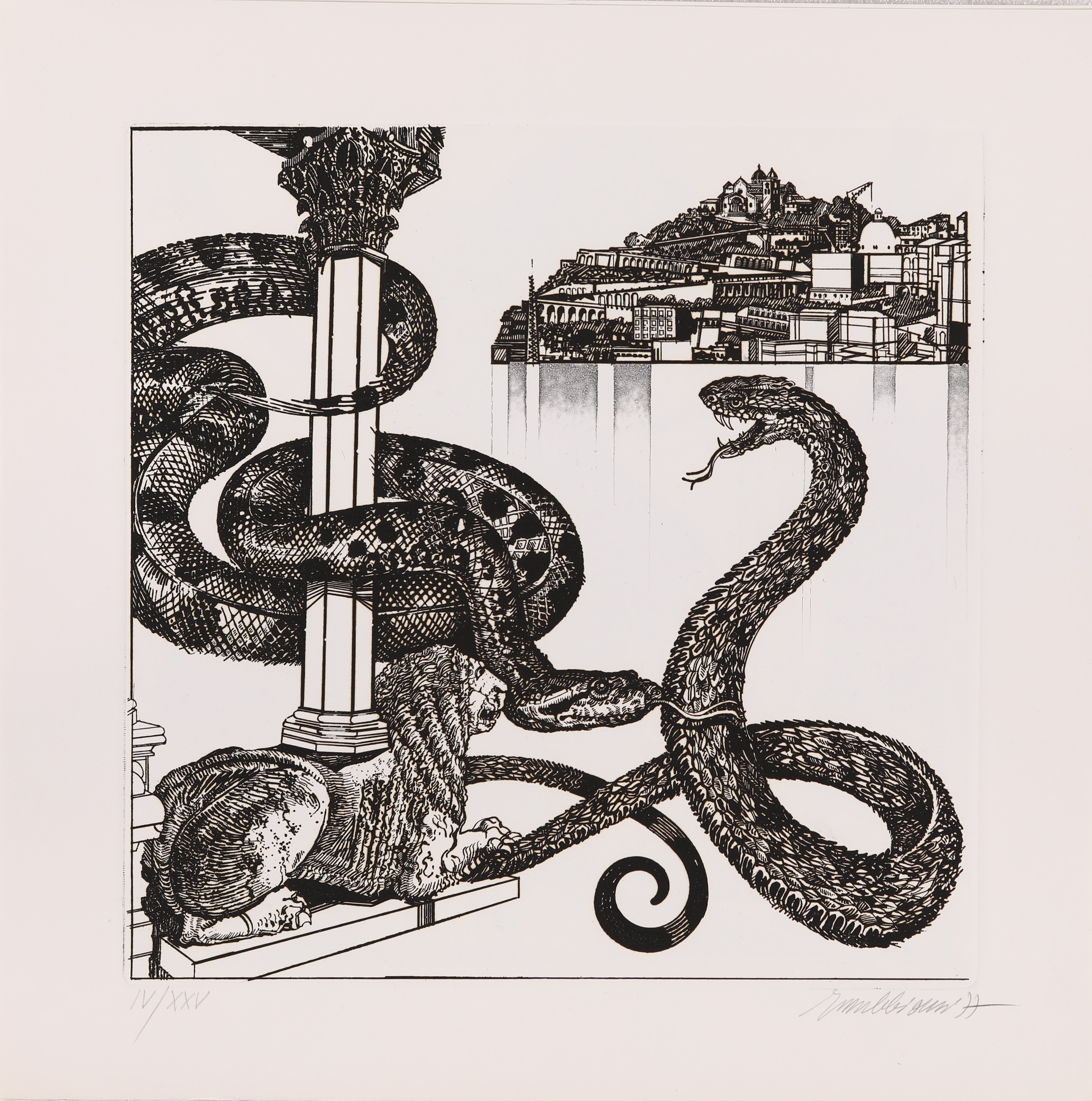 1977 Cartella di 3 acquaforti, firmate e numerate (esemplare IV/XXV), ognuna cm 45x45, entro contenitore originale cm 47x47x3