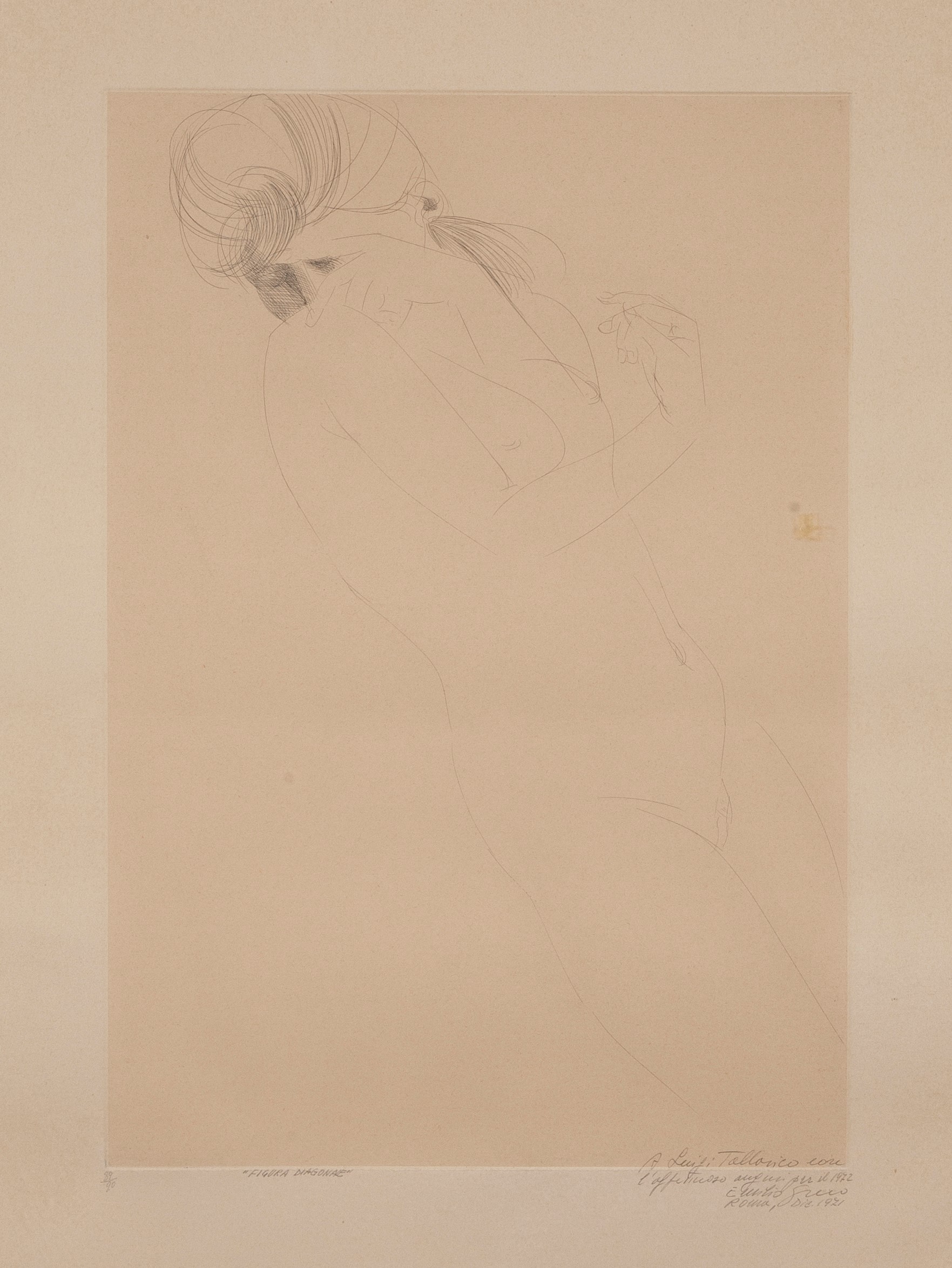 1971 Firma, titolo, dedica e numerazione A Luigi Tallarico con l'affettuoso augurio per il 1972, Emilio Greco, Roma dic 1971, 89/90. Misure in cornice cm 83x67