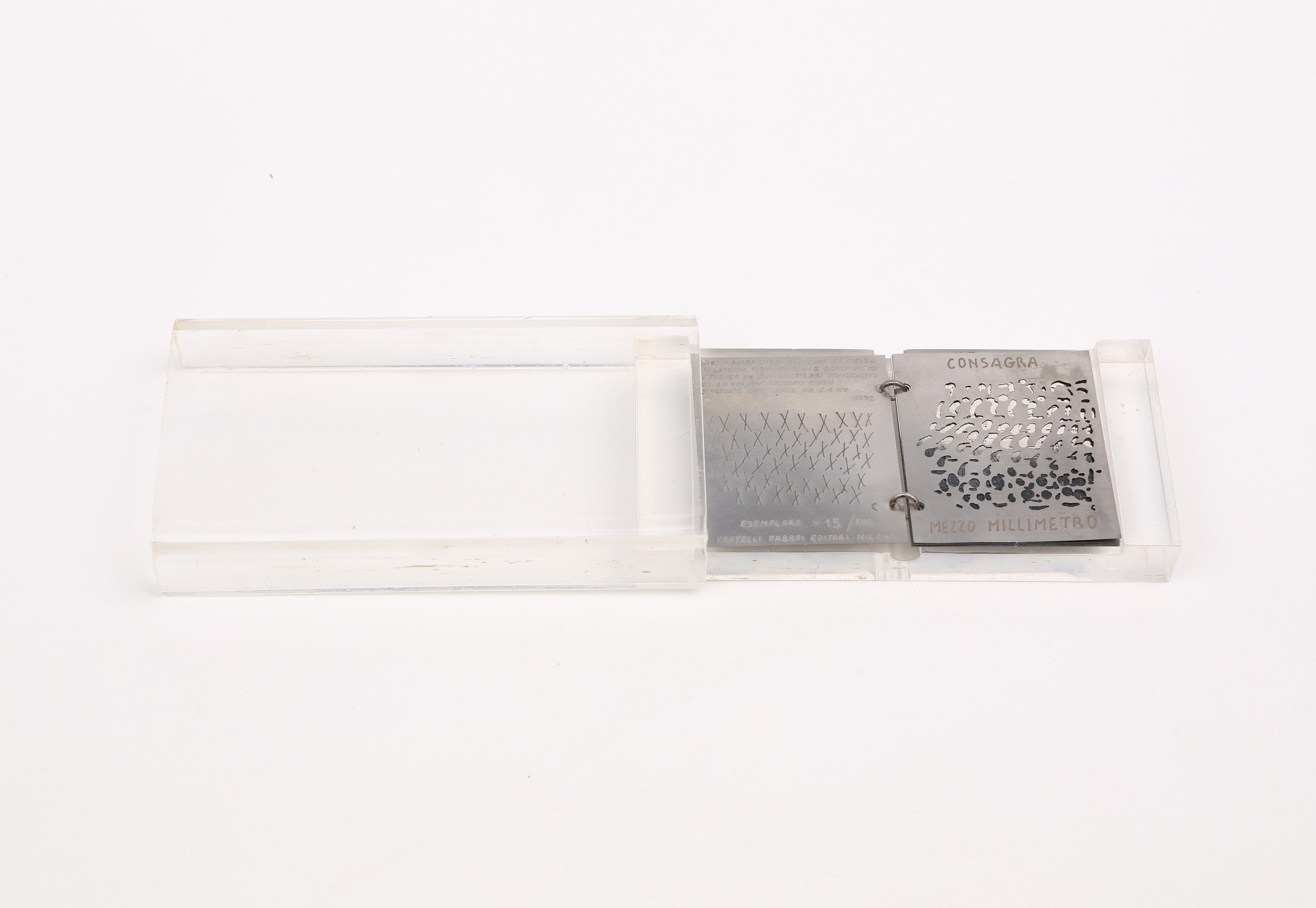 Scultura in acciaio inossiabile, cm 4x3,5x0.02 (cm 4,5x9x1,5 compresa scatola in plexiglass)