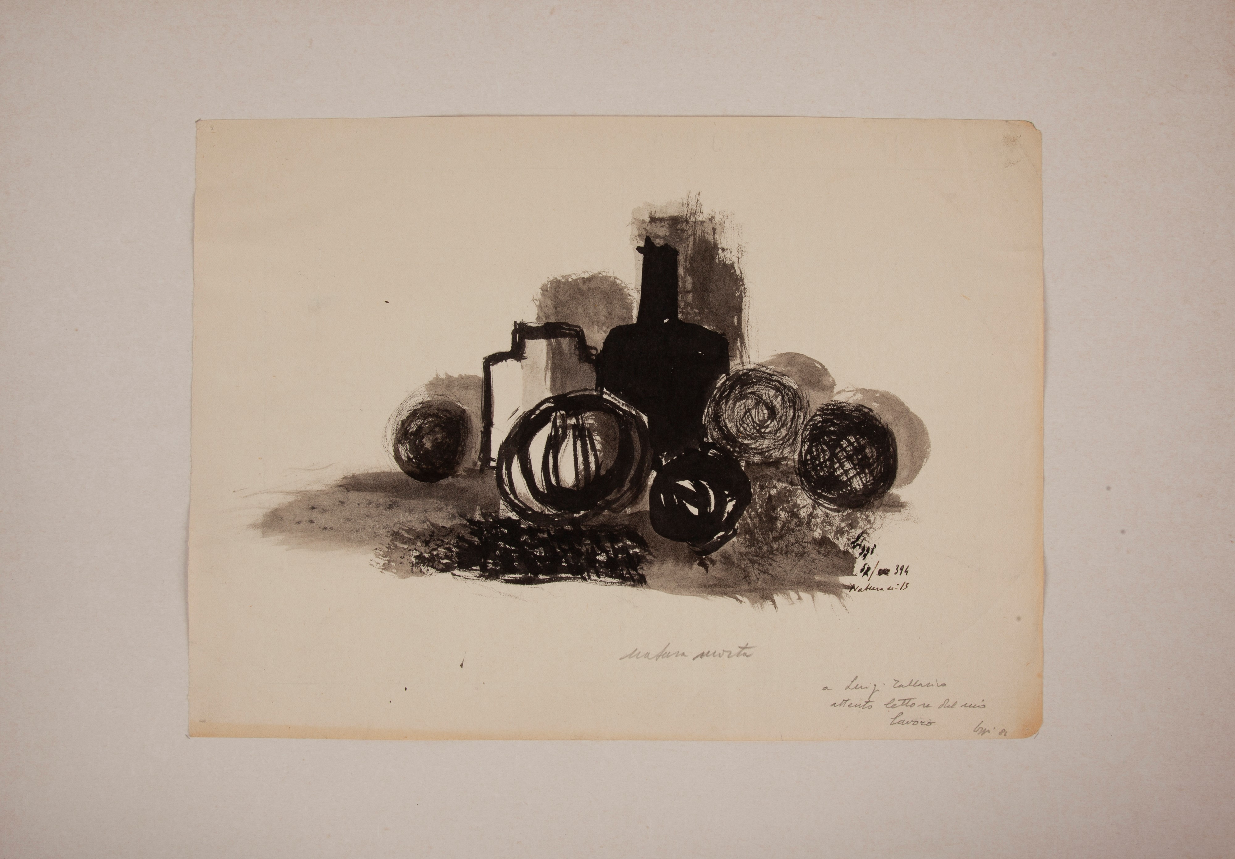 1986 Firma, titolo, data e dedica Biggi, Natura n.15, Natura Morta, a Luigi Tallarico attento lettore del mio lavoro, Biggi '86.
