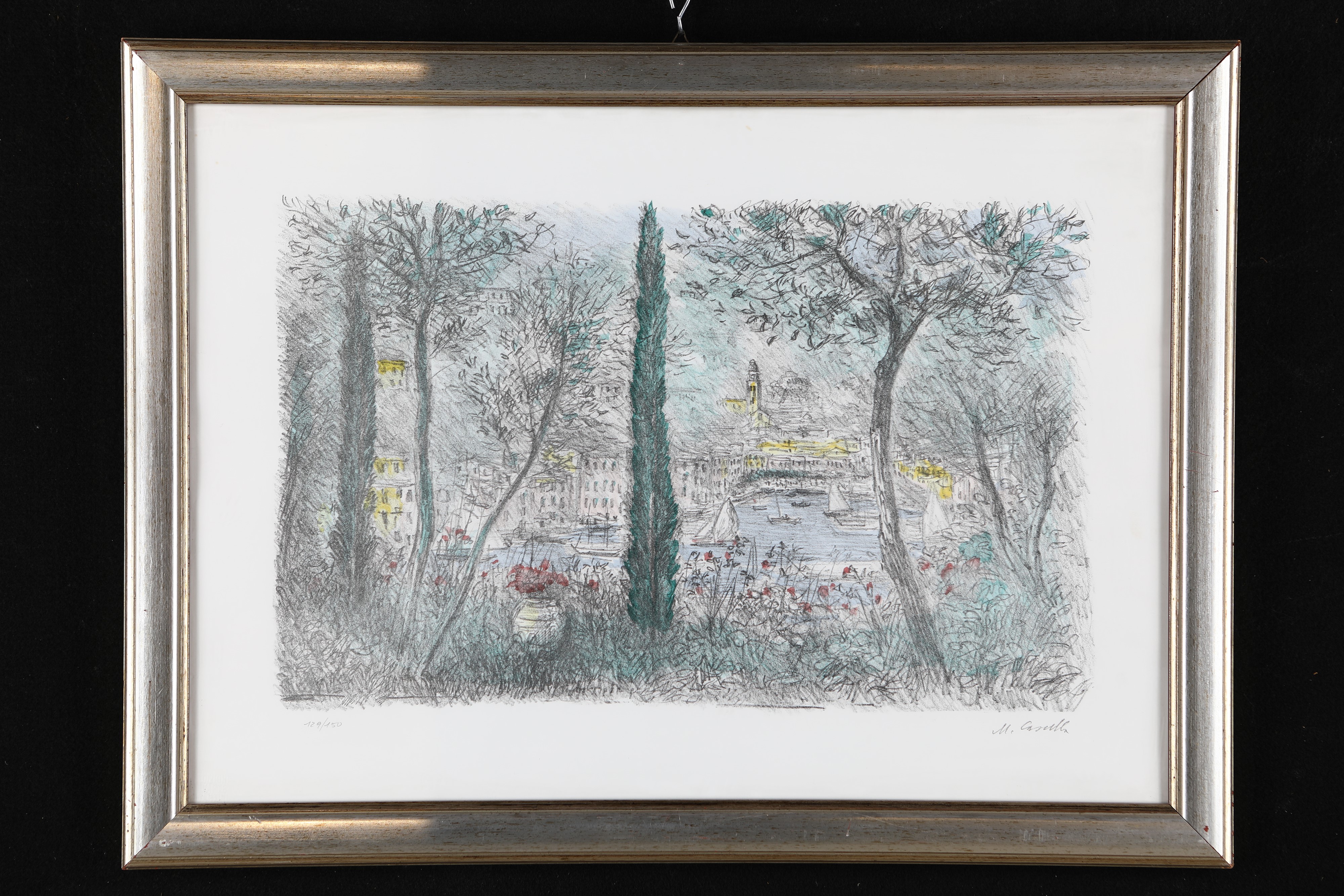 Firma e numerazione M.Cascella, 129/150. Misure in cornice cm 58x78