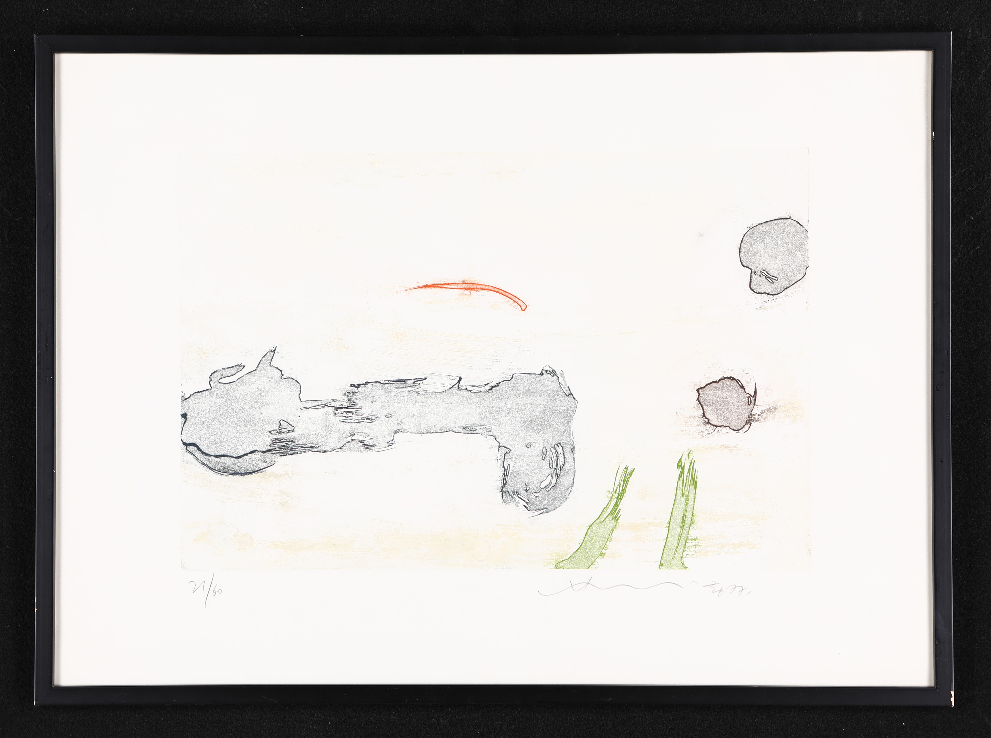 1977 Firma, data e numerazione Hsiao Chin '77. 21/60. Misure in cornice cm 52,5x72