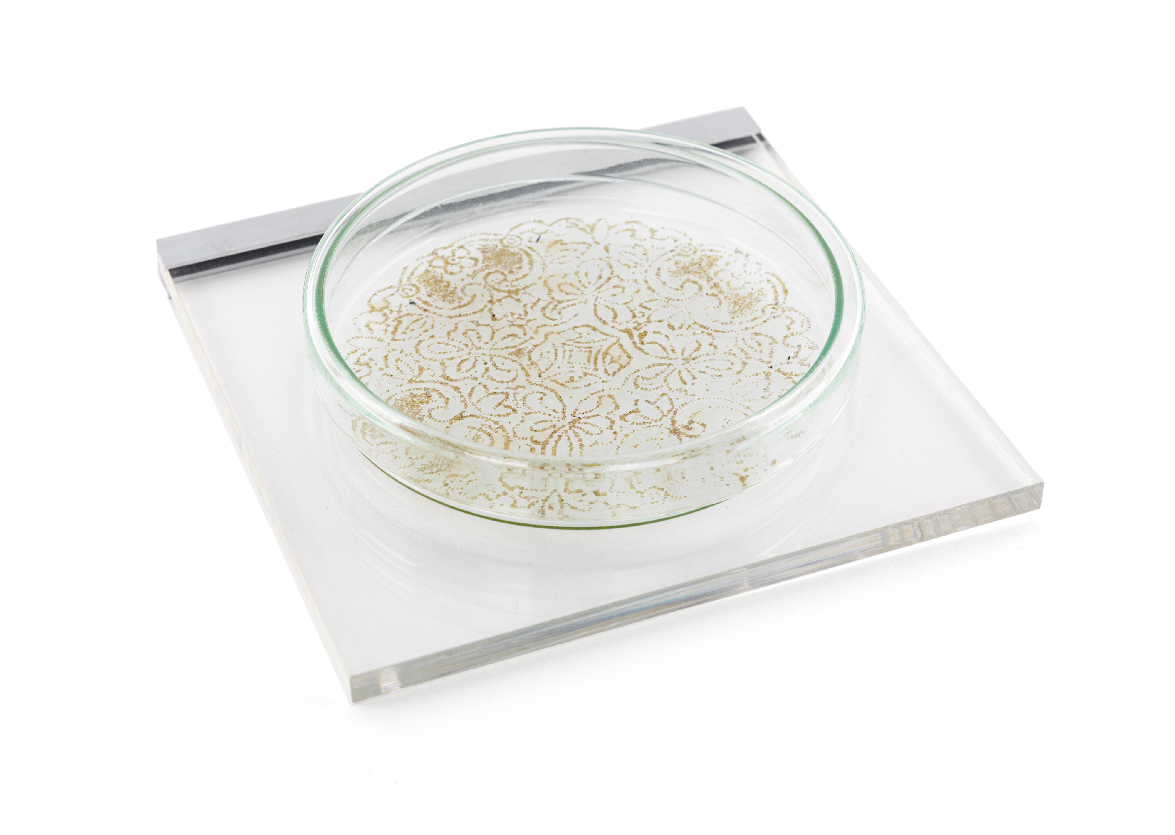 Cenere entro teca di vetro cilindrica, diametro cm 12