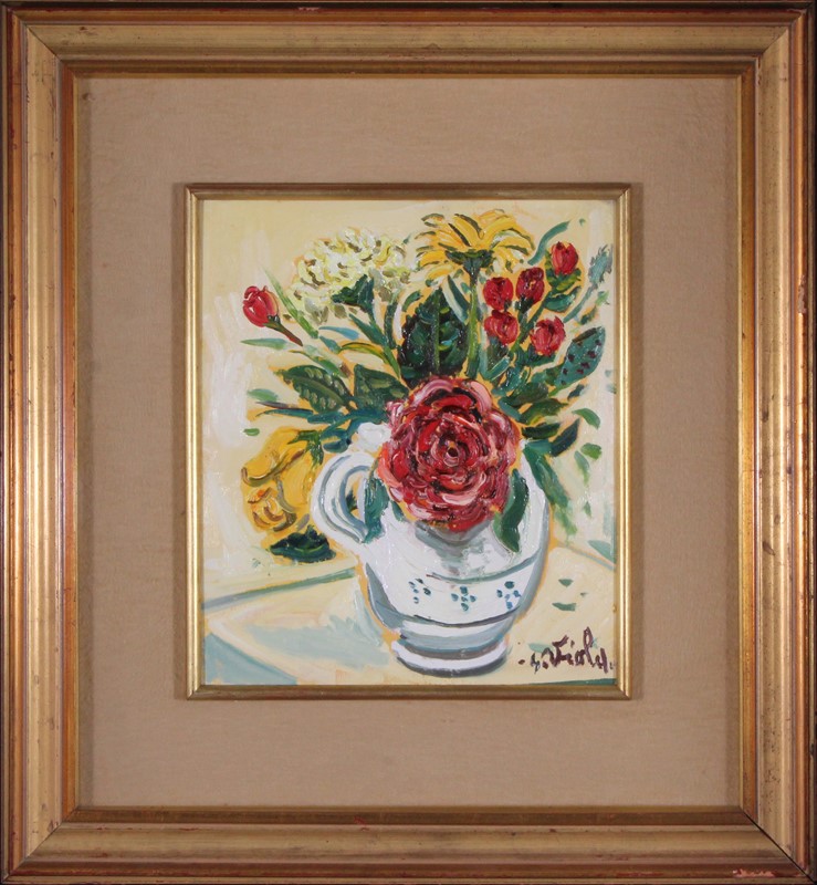 (Milano, 1933 - 2010) Olio su masonite Dimensioni: cm 34,5 x 30 Firma in basso a destra