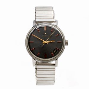 1960 circa in acciaio, cassa tonda 35 mm. quadrante bianco con indici, movimento meccanico a carica manuale, [..]