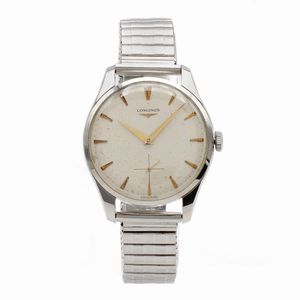 1960 circa in acciaio, ref. 999-5 cassa tonda 35 mm. quadrante argentato con indici dorati, contasecondi ore [..]