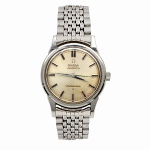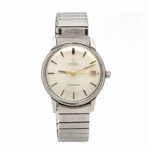 1960 circa in acciaio, cassa tonda 34 mm. quadrante argentato con indici dorati, datario ore 3, movimento meccanico [..]