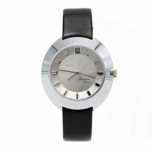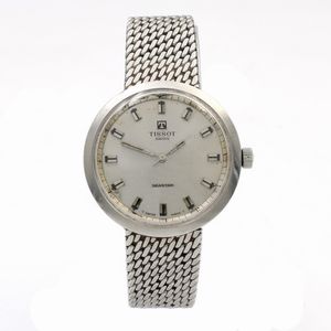 1970 circa in acciaio cromato, cassa di forma 40 mm. quadrante argentato datario tra le ore 4 e 5, movimento [..]