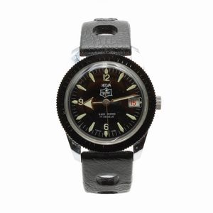 1969 circa in acciaio, cassa tonda 38mm. quadrante nero con indici e numeri arabi, datario ore 3, contasecondi [..]
