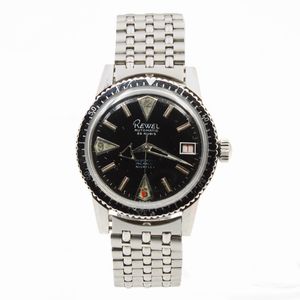 1970 circa in acciaio, cassa 42 mm. quadrante nero, rosso e bianco con indici e multiscala, datario ore 3, ghiera [..]
