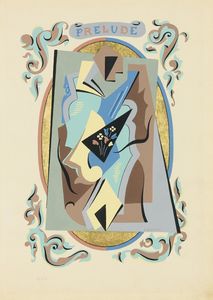 Pochoir, es. 55/125, cm. 46x32,3 (carta) 1936 Firma in basso a destra: G. Severini; tiratura a matita sul margine [..]