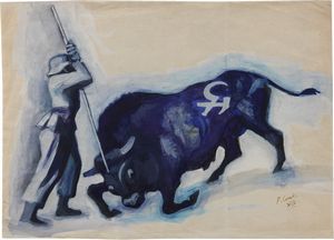 Acquerello e matita su carta applicata su cartoncino, cm. 36,5x26,2 1943 ca. Firma al centro: G. Severini.