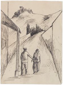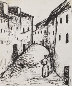 1929-30 A) Rapporti dai borghi e dal contado (Strada), inchiostro su carta, cm. 13x10,3; al verso scritta: Bargello [..]
