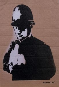 Stencil e spray su cartone, cm. 29,7x21 2015 Firma a stencil in basso a destra: Banksy; scritta e tiratura al [..]