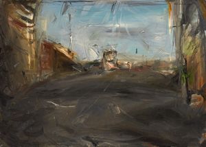 Tecnica mista su tela tesa su tavola, cm. 24x44 Firma in basso a destra: Alinari; firma e titolo al verso sulla [..]