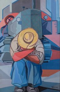 Olio su tela, cm. 66x47 1963 Firma e data in basso a destra: Ajmone 63; titolo e data al verso sulla tela: Il [..]