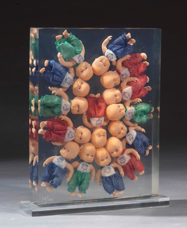 Inclusione di bambole in resina, multiplo, es. 34/100, cm. 42 h. (con base)