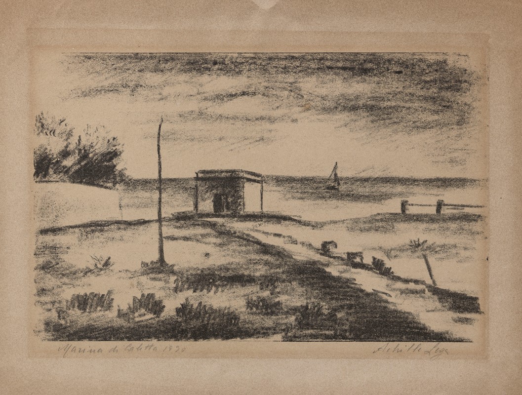 1930 Firma a matita sul margine in basso a destra: Achille Lega, titolo, data e tiratura in basso a sinistra: Marina di Caletta 1930 / 12/20.