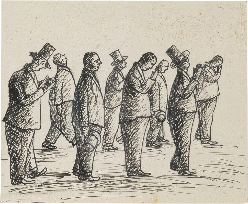 C) Per il discorso del Duce il 14 settembre 1929 - VII: Ah! Il fascismo! Istantanea presa all'ingresso dei congressisti del convegno radico-massonico di Reims, inchiostro e matita su carta, cm. 15,2x20,7. Al verso: schizzo di altra composizione a matita: scritta Processione di Reims / Bargello / cm 7.